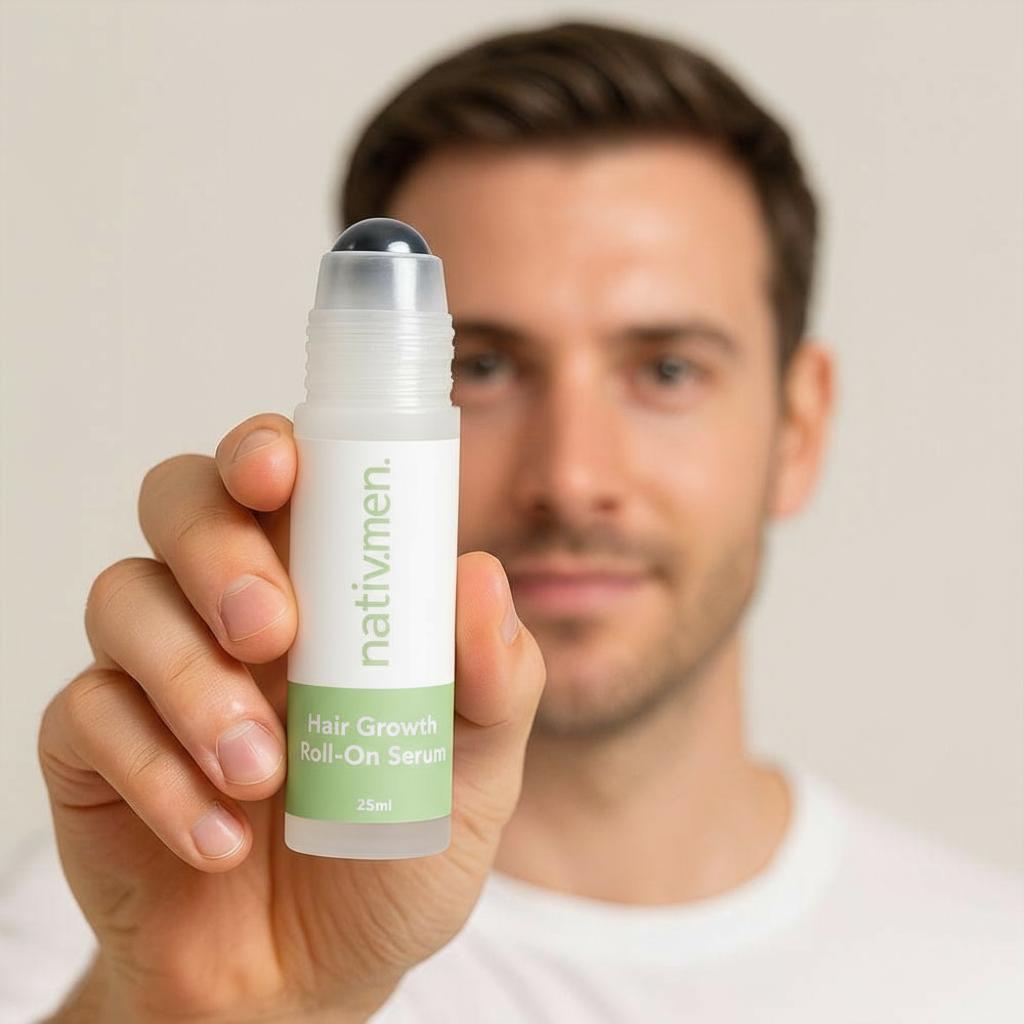 With the native.men Hair Serum Roll-On it only takes 2 minutes of your day to stimulate your follicles and gain your hair back within 2-3 weeks.